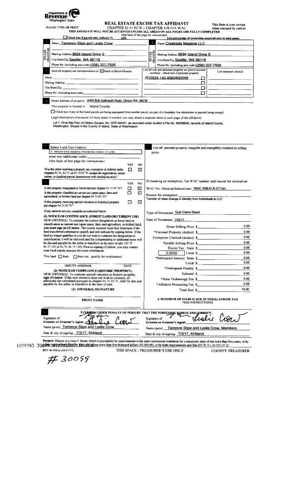 | Mailing Address: | PO BOX 637 FREELAND, WA 98249 | % Ownership: | 100.0000000000% |