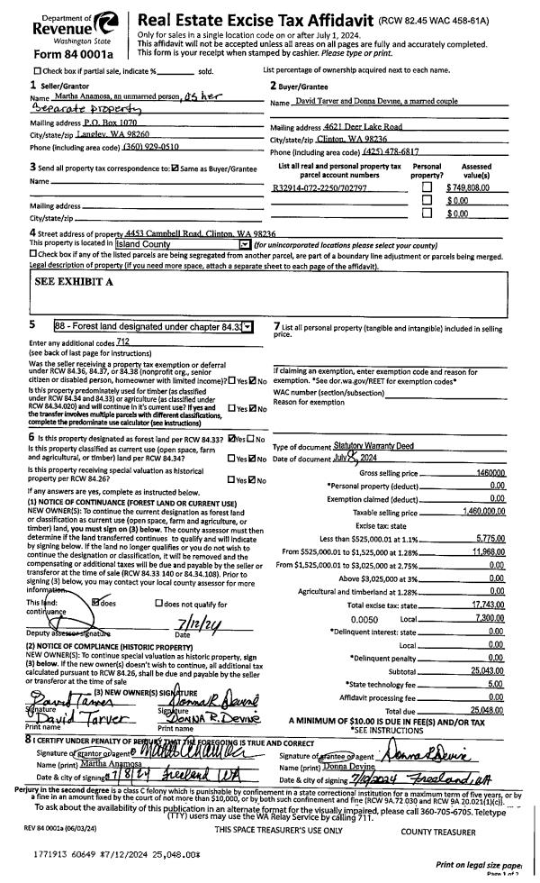 | Tax Area: | 719 - APPRAISER-S Whid Schl Dist, outside Langley, vacant & 50 acres or less | Land Use Code | 88 |