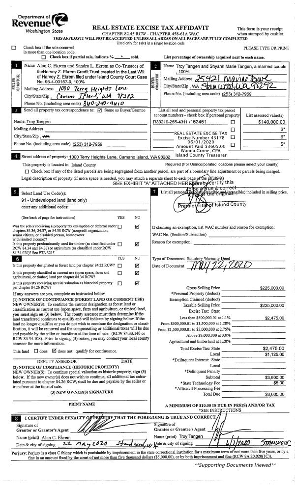 | Tax Area: | 719 - APPRAISER-S Whid Schl Dist, outside Langley, vacant & 50 acres or less | Land Use Code | 88 |