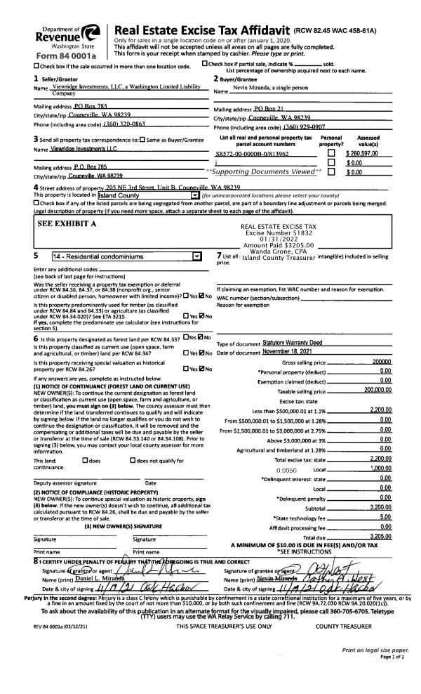 | Mailing Address: | ZACHARY W SIMONSON-BOND PO BOX 4 CLINTON, WA 98236 | % Ownership: | 100.0000000000% |