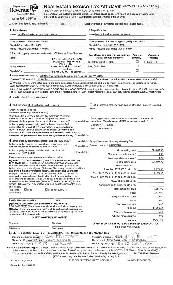 | Tax Area: | 712 - APPRAISER-S Whid Schl Dist, outside Langley, improved, greater than 1 acre | Land Use Code | 11 |