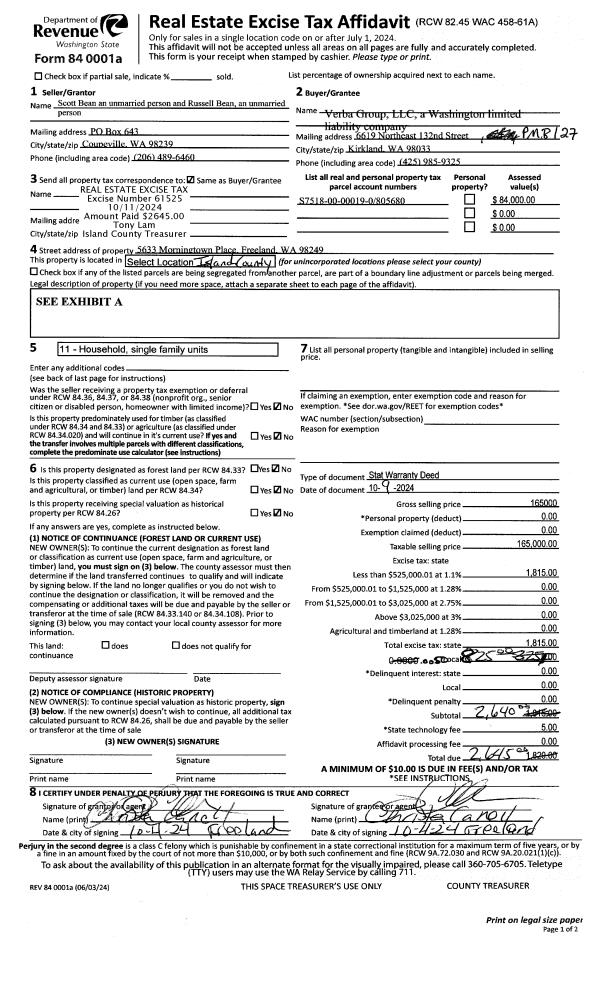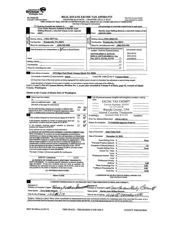| Mailing Address: | 3289 CARRIAGE CT CLINTON, WA 98236 | % Ownership: | 100.0000000000% |