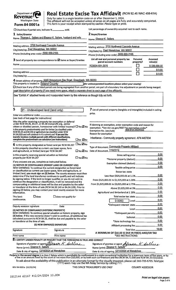 | Mailing Address: | CYNTHIA GRAHAM BISHOP 3841 FRENCH RD CLINTON, WA 98236 | % Ownership: | 100.0000000000% |