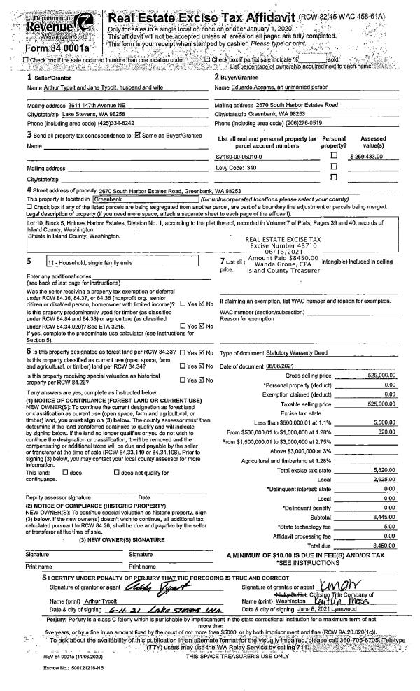 | Tax Area: | 712 - APPRAISER-S Whid Schl Dist, outside Langley, improved, greater than 1 acre | Land Use Code | 11 |
