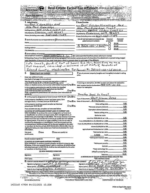 | Mailing Address: | 6807 HOLST RD CLINTON, WA 98236 | % Ownership: | 100.0000000000% |