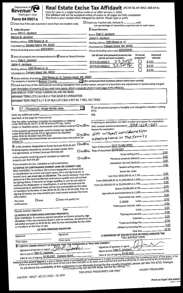 | 6 | 09/01/1991 | QCD | Quit Claim Deed | VANDEGRIFT, A E | VANDEGRIFT, PETER | | | $0.00 | 13608 | 91015458 |