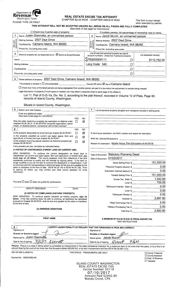| Mailing Address: | JARED FARRELL 2302 ZYLSTRA RD OAK HARBOR, WA 98277 | % Ownership: | 100.0000000000% |