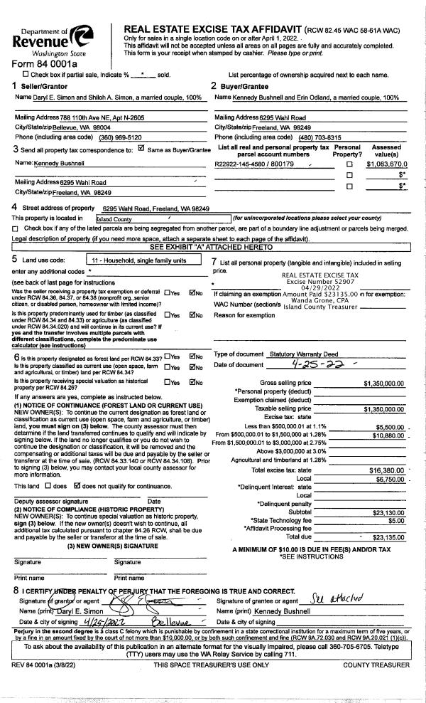 | Mailing Address: | 2650 SANDY DR CAMANO ISLAND, WA 98282 | % Ownership: | 100.0000000000% |