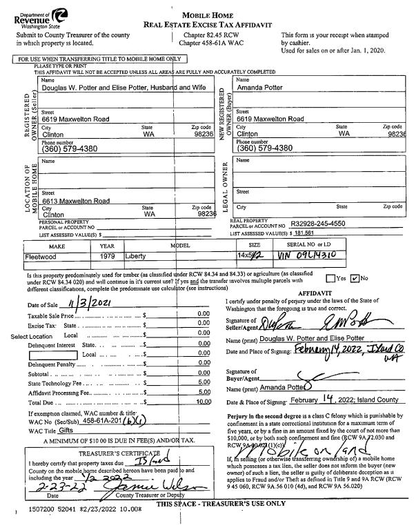 | Mailing Address: | 894 HAVEN PLACE CAMANO ISLAND, WA 98282-7026 | % Ownership: | 100.0000000000% |