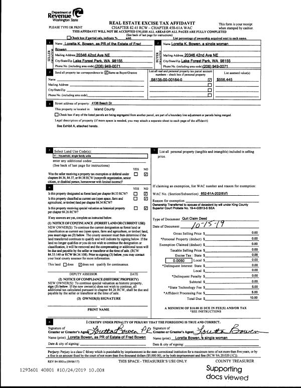 | Mailing Address: | ANN ROSE FORSETH 928 HAVEN PL CAMANO ISLAND, WA 98282 | % Ownership: | 100.0000000000% |