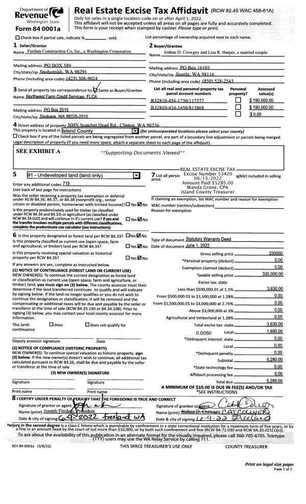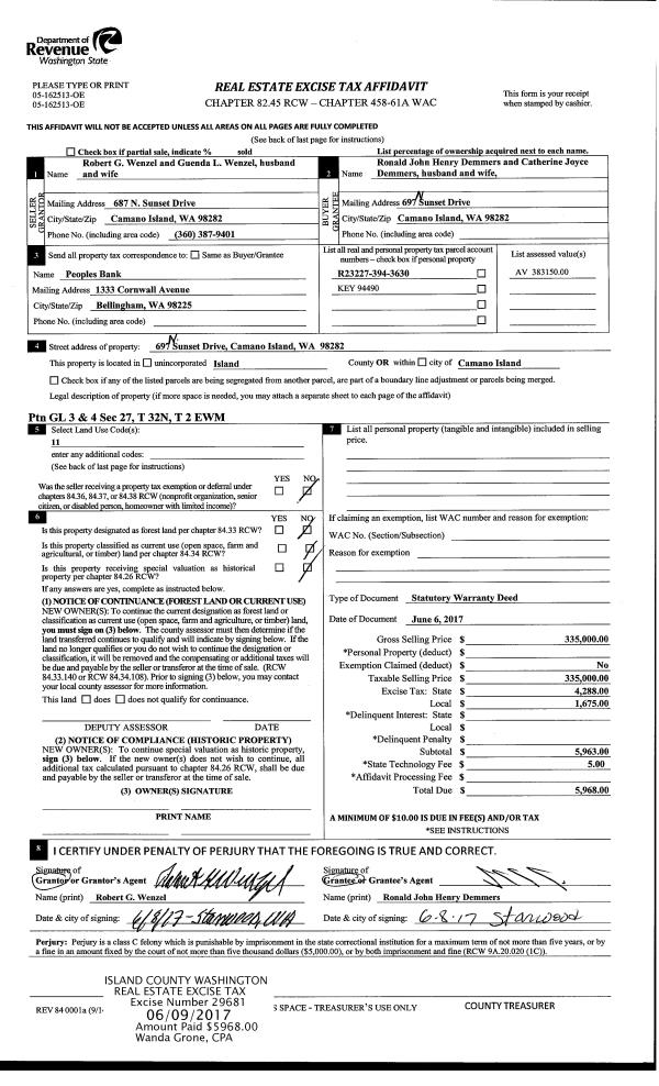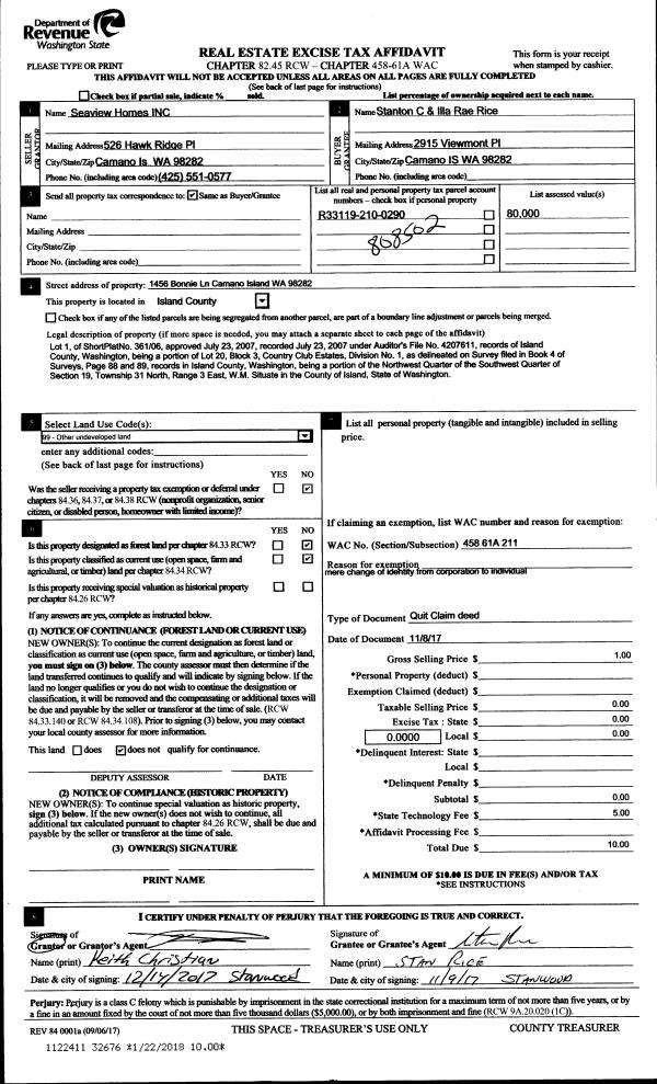 | Mailing Address: | 959 SANDELL RD CAMANO ISLAND, WA 98282 | % Ownership: | 100.0000000000% |