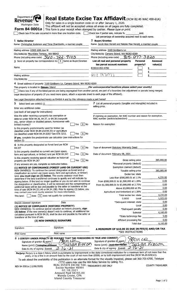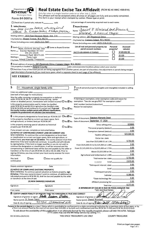 | Mailing Address: | 2399 CAMANO REAL PL CAMANO ISLAND, WA 98282 | % Ownership: | 100.0000000000% |