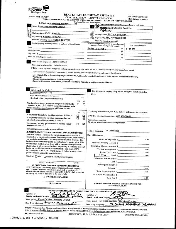 | Mailing Address: | 1455 DALLMAN RD CAMANO ISLAND, WA 98282 | % Ownership: | 100.0000000000% |
