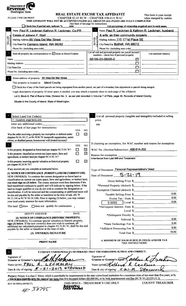 | Mailing Address: | KATHERINE E WEINSTEIN 3168 GOLDBERRY LN CAMANO ISLAND, WA 98282 | % Ownership: | 100.0000000000% |