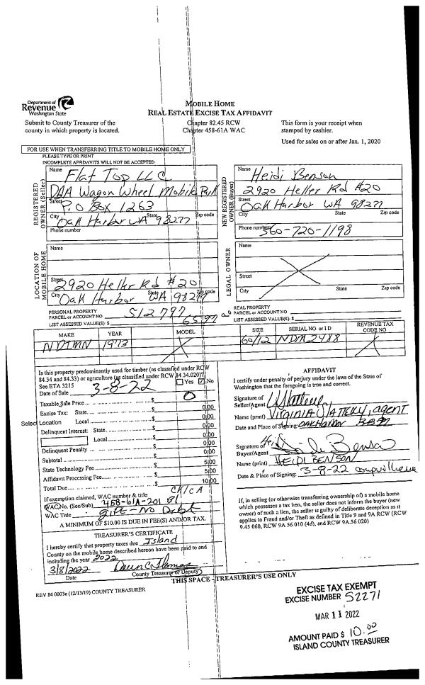 | Mailing Address: | STEPHANIE OXBOROUGH 1401 DALLMAN RD CAMANO ISLAND, WA 98282 | % Ownership: | 100.0000000000% |