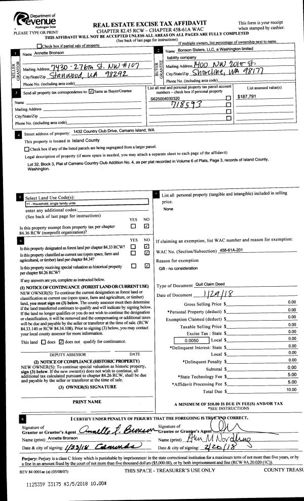 | Mailing Address: | MICHELLE L MUSSEY 1557 ESSENCE WAY CAMANO ISLAND, WA 98282 | % Ownership: | 100.0000000000% |