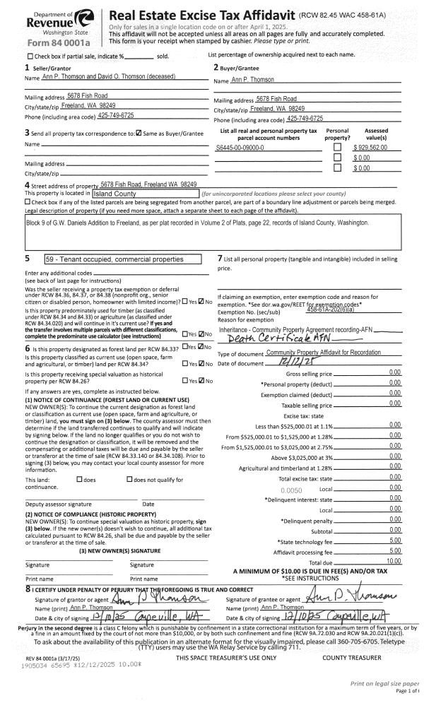 | Mailing Address: | MARIKO THOMAS 2105 BOULDER MEADOW LN OAK HARBOR, WA 98277 | % Ownership: | 100.0000000000% |