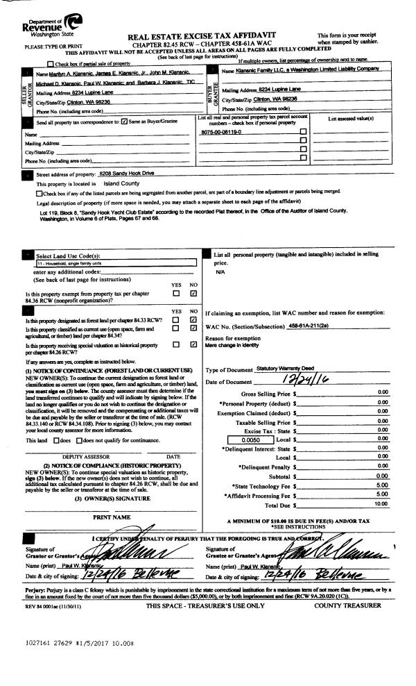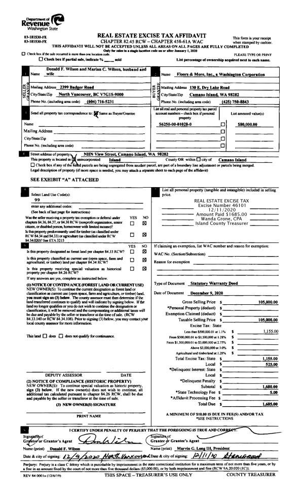 | Mailing Address: | MAURICIO KREMER 3515 SE CAMANO DR CAMANO ISLAND, WA 98282 | % Ownership: | 100.0000000000% |