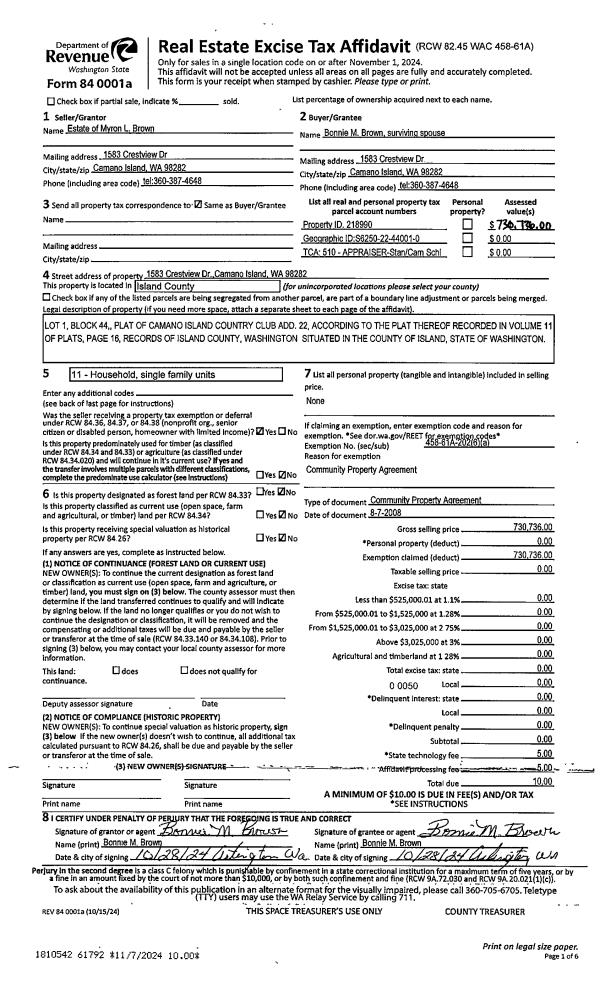 | Mailing Address: | CHRISTINE MARIE OTTERBECK 2136 BOULDER MEADOW LN OAK HARBOR, WA 98277 | % Ownership: | 100.0000000000% |