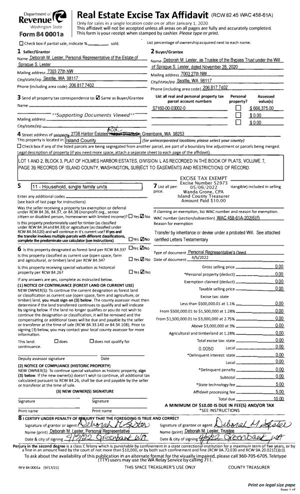 | Mailing Address: | 3325 SOUTH EAST CAMANO DR CAMANO ISLAND, WA 98282 | % Ownership: | 100.0000000000% |