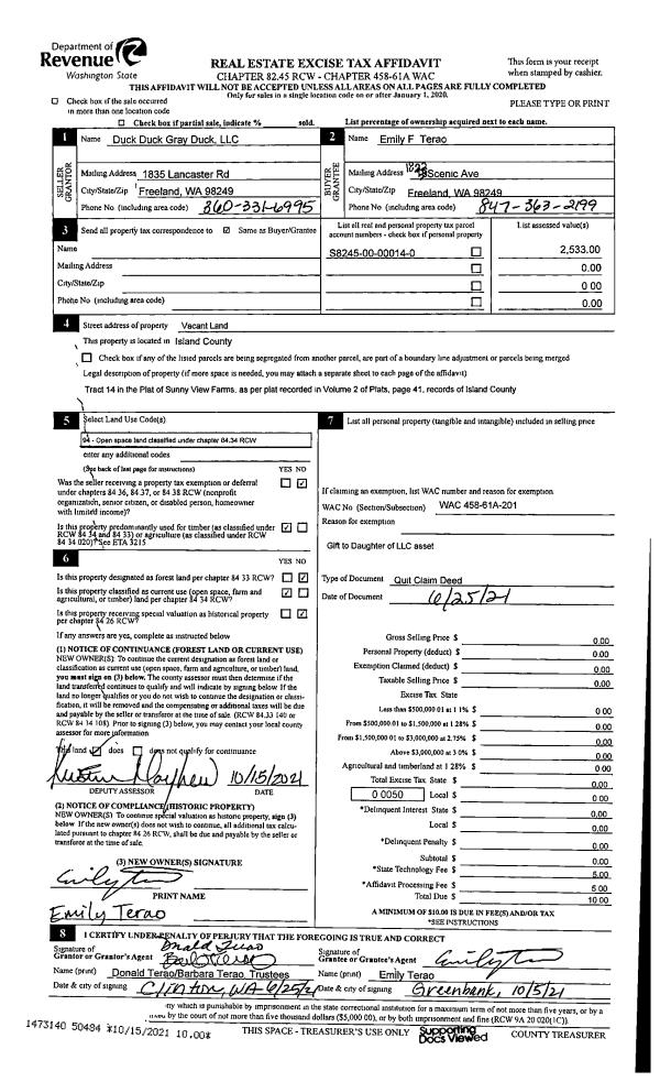 | Mailing Address: | 2389 ZYLSTRA RD OAK HARBOR, WA 98277 | % Ownership: | 100.0000000000% |