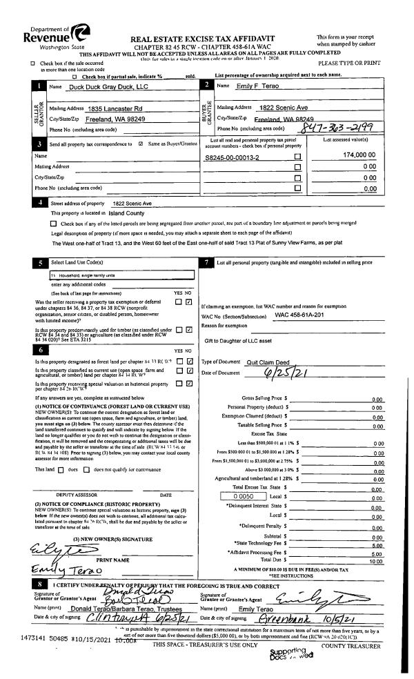 | Mailing Address: | 2389 ZYLSTRA RD OAK HARBOR, WA 98277 | % Ownership: | 100.0000000000% |