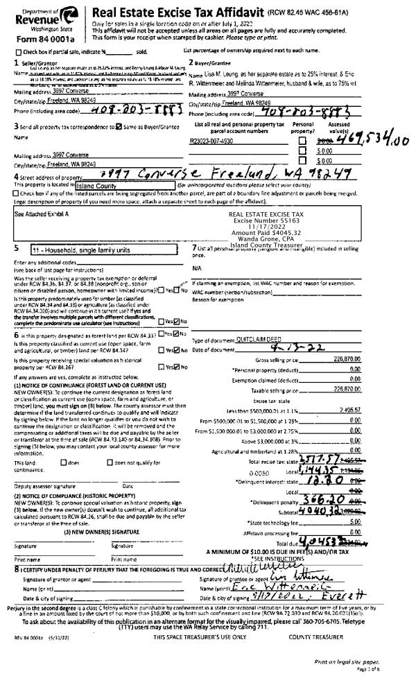 | Mailing Address: | 3875 SOUTHEAST CAMANO DR CAMANOISLAND, WA 98282 | % Ownership: | 100.0000000000% |
