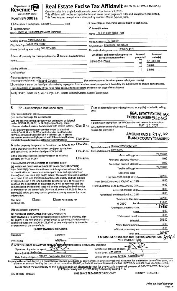 | Mailing Address: | DEBRA A CULBERTSON 3685 SE CAMANO DR CAMANO ISLAND, WA 98282 | % Ownership: | 100.0000000000% |
