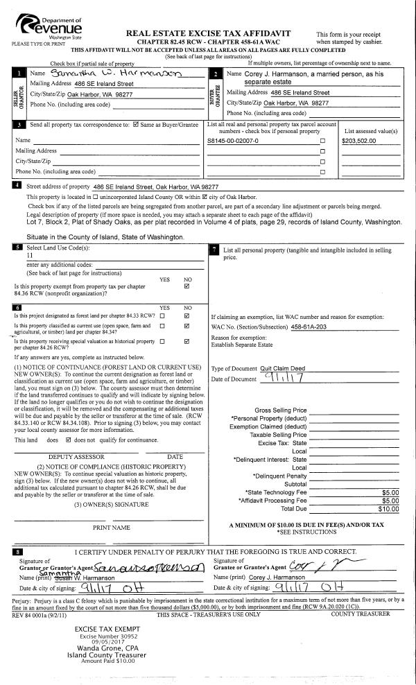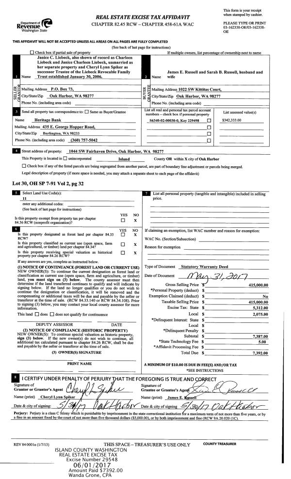 | 5 | 11/16/2016 | GRANTD | Grant Deed | FAKKEMA I LLC | WHIDBEY CAMANO LAND TRUST | | | $490,000.00 | 27079 | 4412213 |