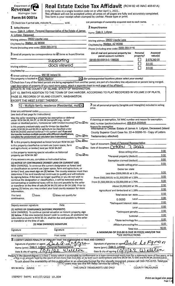 | Mailing Address: | CHERYL LYNNE DUNHAM TRUSTEE 4135 SE CAMANO DR CAMANO ISLAND, WA 98282 | % Ownership: | 100.0000000000% |
