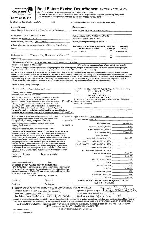 | 4 | 08/01/1989 | WD | Warranty Deed | VERESS, SANDOR A | ARRINGTON, DALE E | | | $15,000.00 | 93731 | 89012464 |