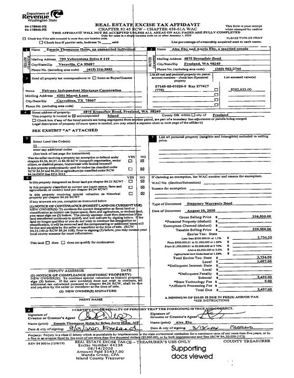 | Mailing Address: | 4750 GOLDSMITH RD LANGLEY, WA 98260 | % Ownership: | 100.0000000000% |