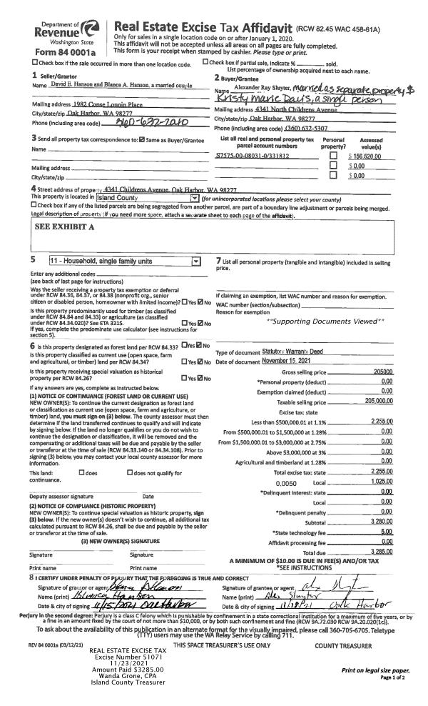 | Tax Area: | 700 - APPRAISER-S Whid Schl Dist, in town of Langley | Land Use Code | 11 |