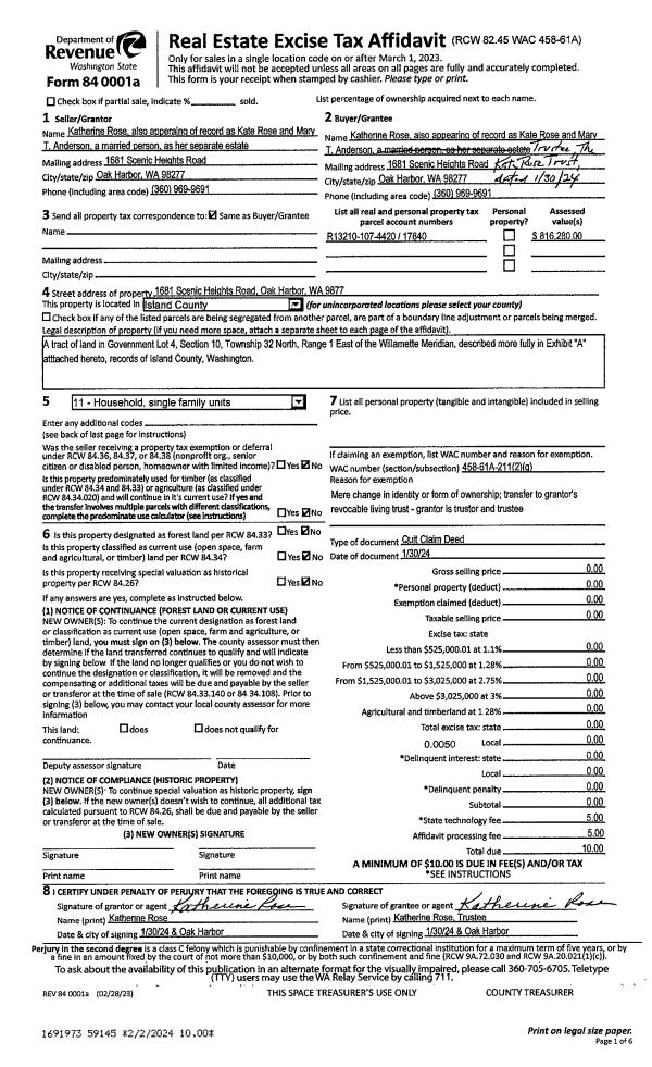 | Mailing Address: | 1745 HILLCREST LOOP MOUNT VERNON, WA 98274-4571 | % Ownership: | 100.0000000000% |