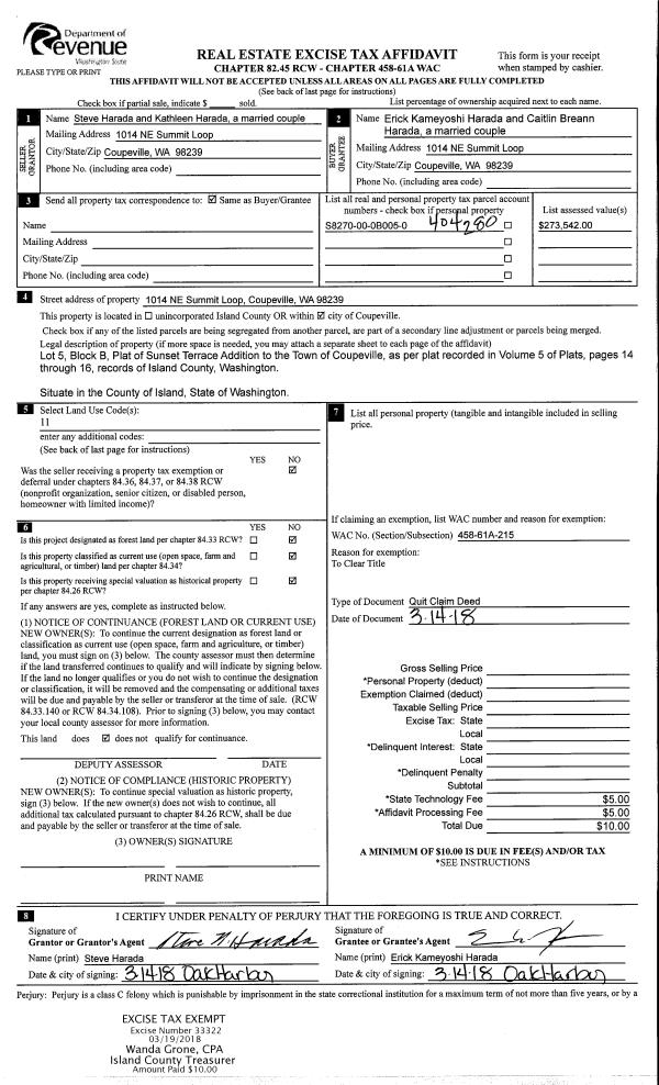 | 1 | 01/29/2018 | BARGSLD | Bargain And Sale Deed | WHIDBEY CAMANO LAND TRUST | ISLAND COUNTY | | | $90,000.00 | 32801 | 4438399 |