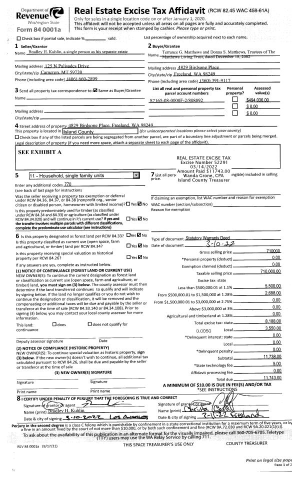 | Mailing Address: | WESLEY D EIDSNESS 180 S SUNRISE BLVD CAMANO ISLAND, WA 98282-8793 | % Ownership: | 100.0000000000% |
