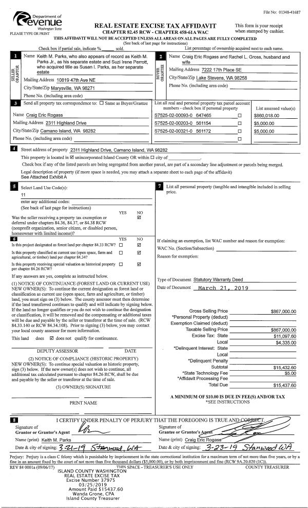 | Mailing Address: | CARRIE PICARD 150 S SUNRISE BLVD CAMANO ISLAND, WA 98282 | % Ownership: | 100.0000000000% |