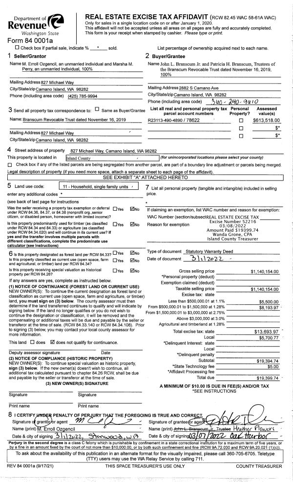 | Mailing Address: | 762 INDIAN BEACH RD CAMANO ISLAND, WA 98282 | % Ownership: | 100.0000000000% |