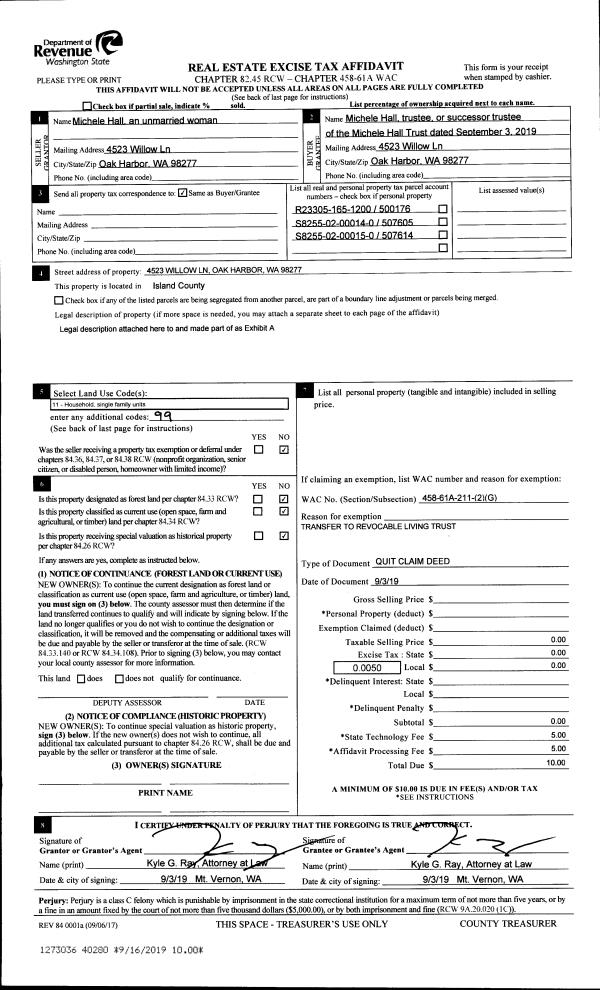 | 2 | 09/05/2019 | QCD | Quit Claim Deed | JEWETT 50% UNDIV INT, TIMOTHY JAMES | JEWETT, TIMOTHY JAMES | | | $0.00 | 40266 | 4471429 |
