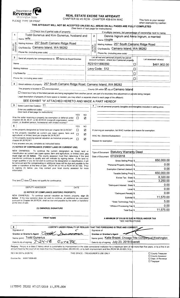 | 1 | 06/26/2018 | QCD | Quit Claim Deed | RICHMOND, RUTH F | WHIDBEY CAMANO LAND TRUST | | | $0.00 | 34837 | 4447336 |