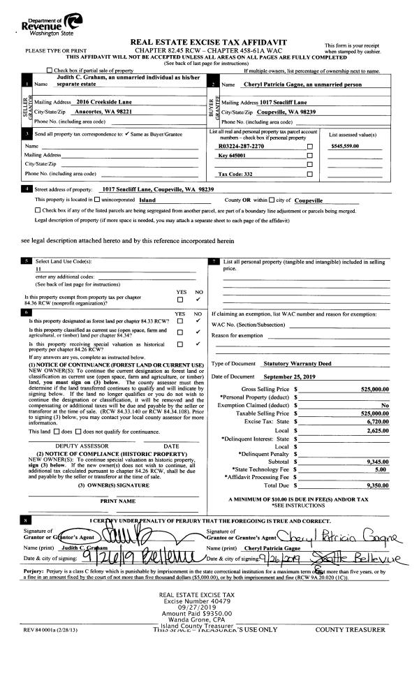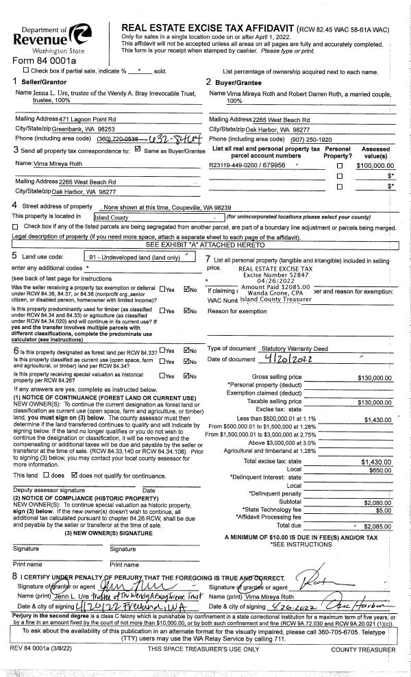 | Mailing Address: | SHIRLEY WADSWORTH, TTEE 2338 S CAMANO DR CAMANO ISLAND, WA 98282 | % Ownership: | 100.0000000000% |