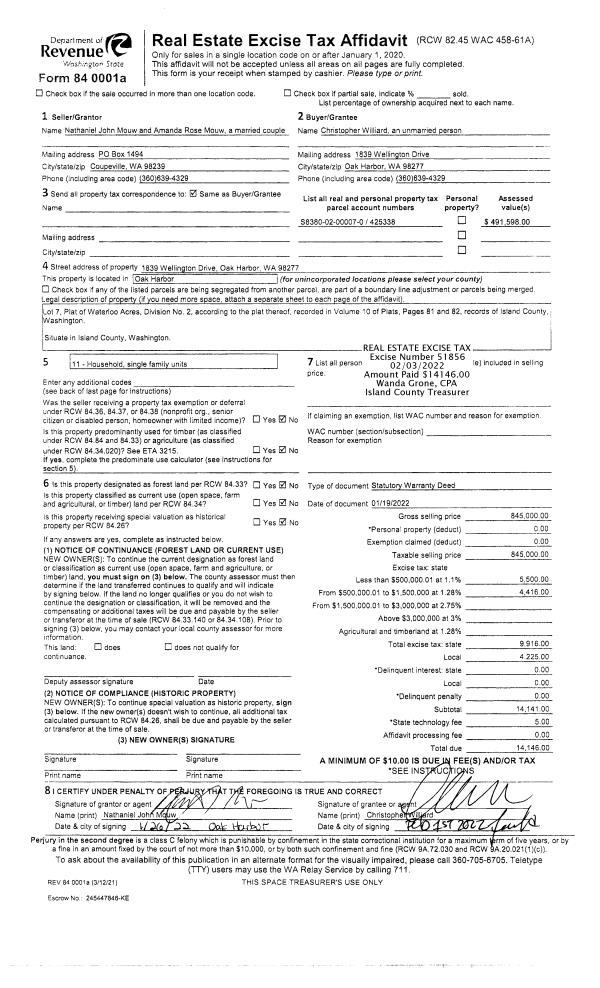 | 1 | 02/27/2012 | TTAXD | Treasurer's Tax Deed | ISLAND COUNTY TREASURER | BEYKOVSKY, PAUL J | | | $0.00 | 6973 | 4310634 |