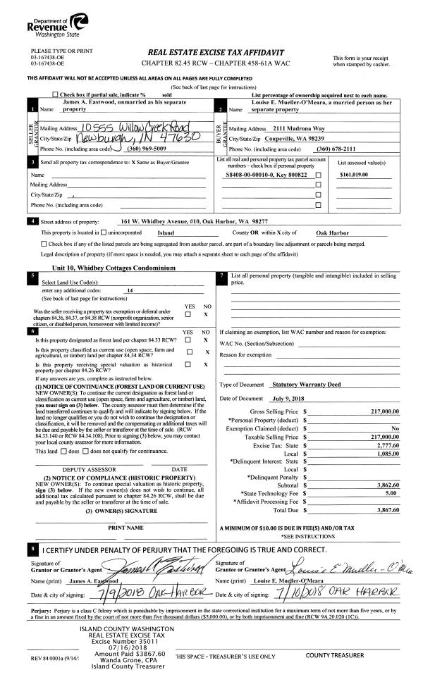 | Mailing Address: | CHRISTINA N PETERSON, KATHERINE S NORTH 3725 FRENCH RD CLINTON, WA 98236 | % Ownership: | 100.0000000000% |