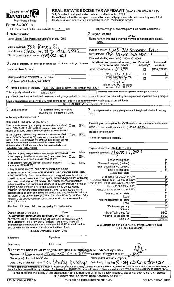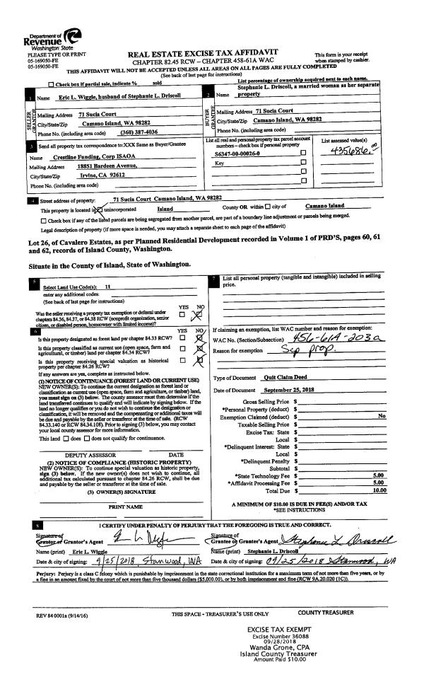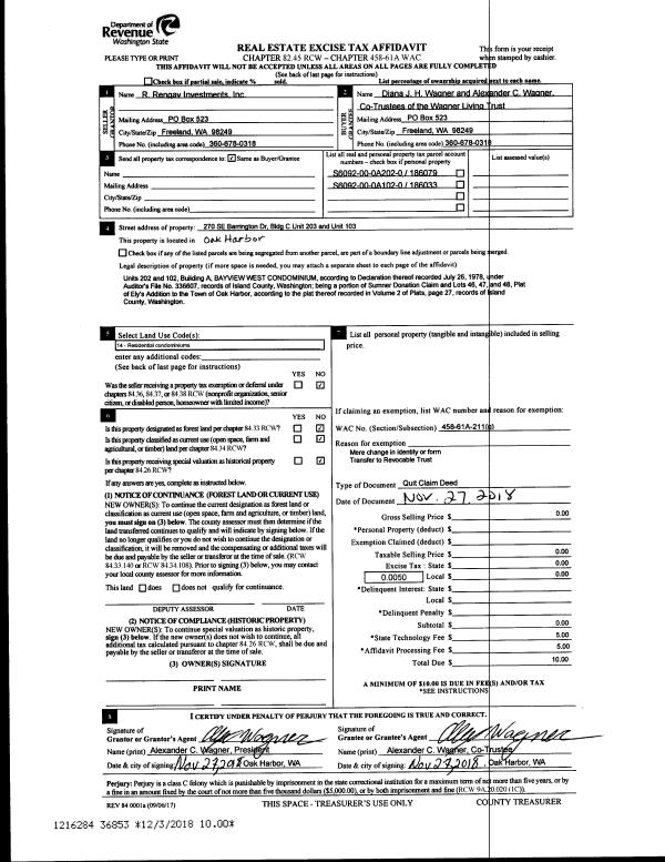 | Mailing Address: | 818 N SUNRISE BLVD CAMANO ISLAND, WA 98282 | % Ownership: | 100.0000000000% |