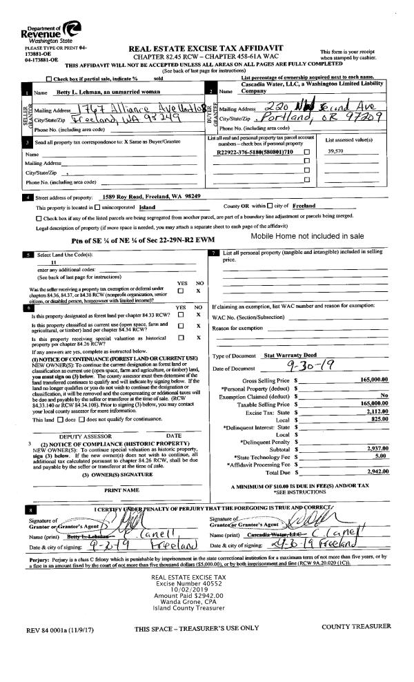 | Name: | CAMANO ISLAND REALTY, LLC | Owner ID: | 293102 |