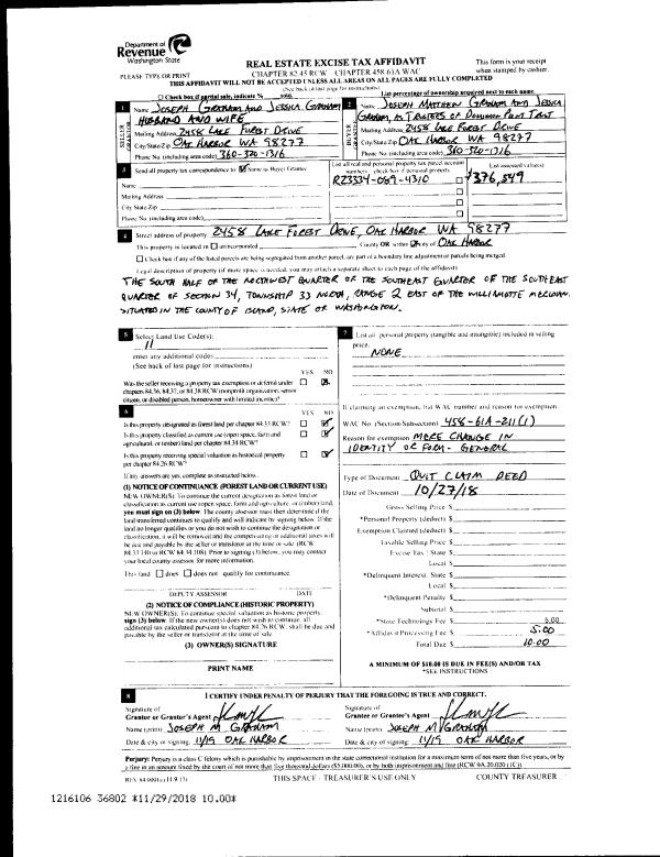 | 3 | 10/22/2015 | DEEDINLIEU | Deed In Lieu Of Foreclosure | A WA CORP, TR CAMANO INC | SKAGIT BANK | | | $0.00 | 21939 | 4388506 |