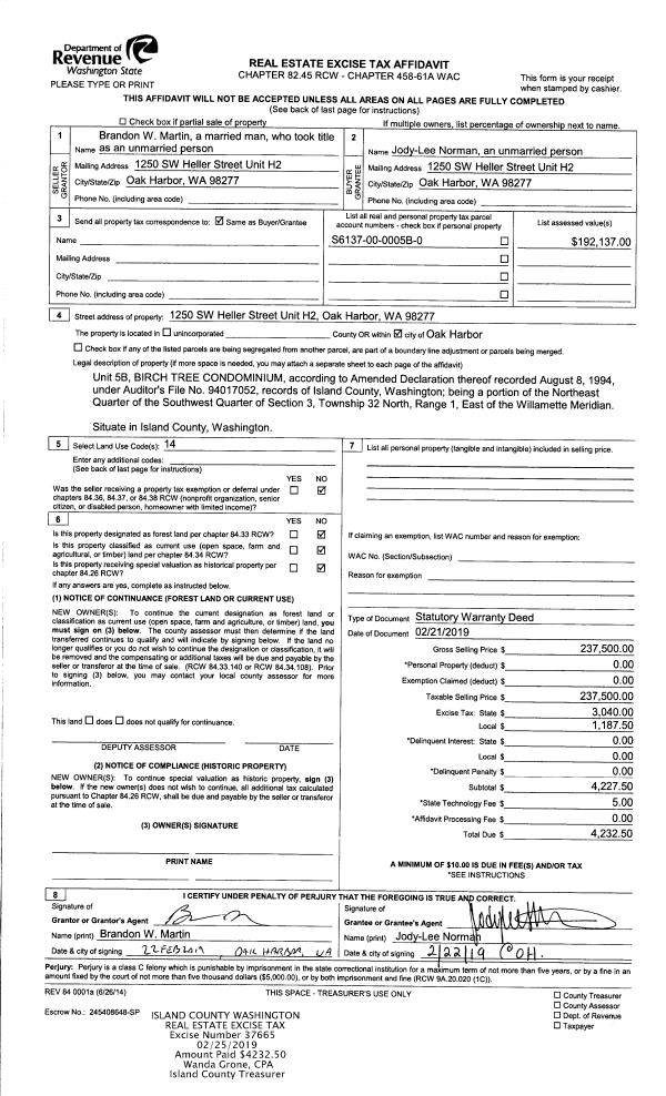 | 3 | 10/01/1973 | CD | DNU - Correction Deed | GILBERTSON, INOR | CAMANO, IS C | | | $0.00 | 50203 | 0 |