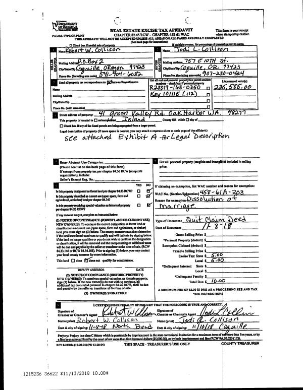 | Mailing Address: | CARRIE ELIZABETH URLING 1123 UTSALADY RD CAMANO ISLAND, WA 98282 | % Ownership: | 100.0000000000% |