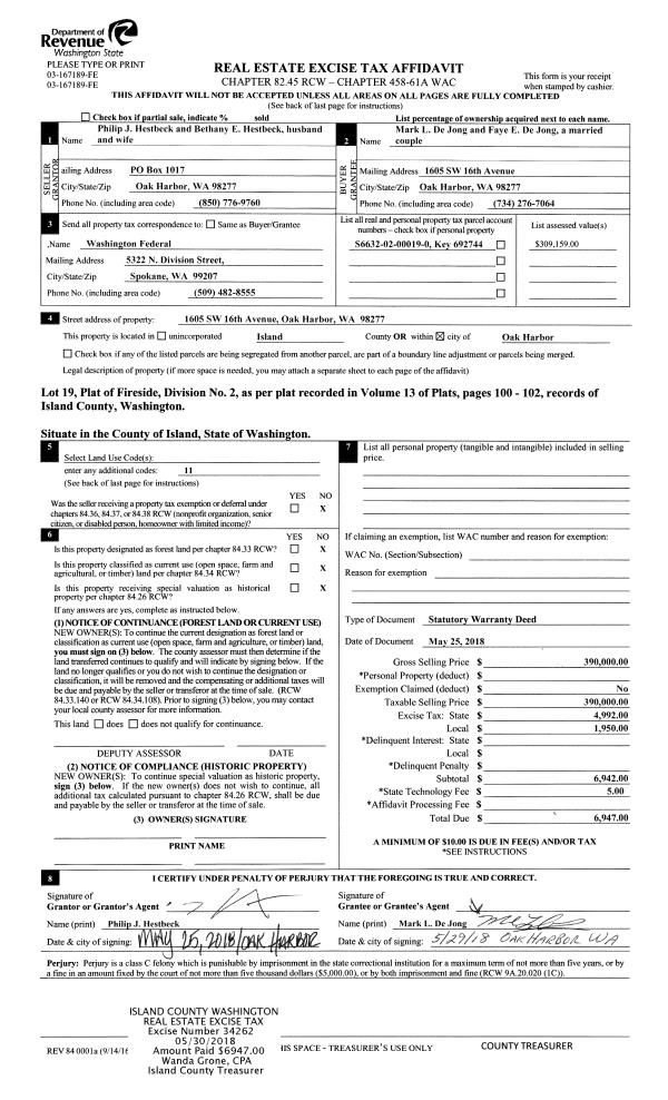 | Mailing Address: | 205 MEADOWLARK RD COUPEVILLE, WA 98239 | % Ownership: | 100.0000000000% |