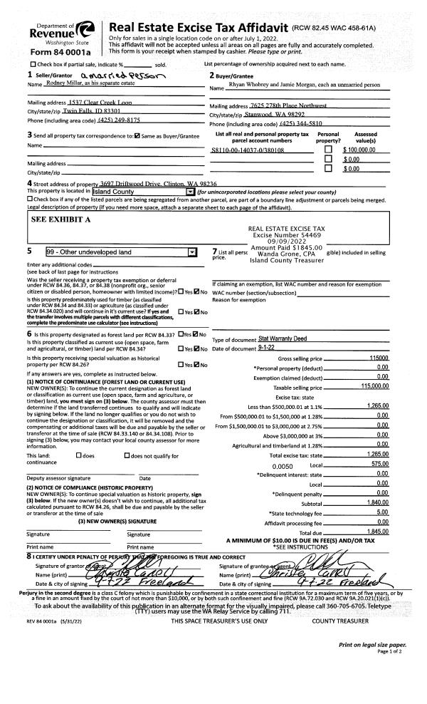 | Mailing Address: | 1447 OCEAN DR CAMANO ISLAND, WA 98282-8855 | % Ownership: | 100.0000000000% |